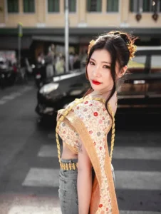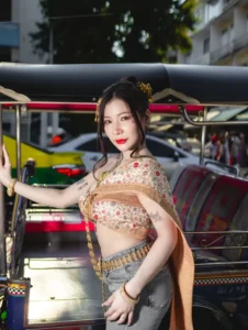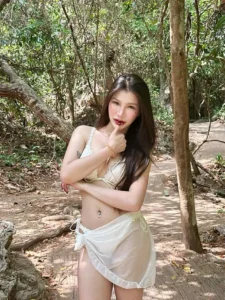 อยากจะตามไปเล่นน้ำด้วยเลยชุดนี้ ต่อด้วยงานชุดว่ายน้ำ น้องกิ๊ฟท์เย้ จัดให้เราดูตลอด ไปเห็นงานถ่ายแบบตัวนี้มา ชุดว่ายน้ำทูพีชสีขาวลายชมพู ทรงอวบแบบนี้พอใส่ชุดมันดูน่าฟัดเอามาก บราที่ว่าใหญ่มันดูไม่พอสำหรับน้องเลย บิกินี่สีเดียวกันแบบคาดเชือกเห็นแล้วแอบลุ้นให้หลุด งานถ่ายแบบสวยงามก็มีนะ งานนี้น้องขอเกาะกระแส Bangkok city ด้วยการใส่สไบสีเหลืองขมิ้น คู่กับกางเกงยีนส์ขายาว เครื่องประดับสร้อยสังวาลมาเต็มตลอด จะบอกเลยว่าน่ารักจัด ภาพพื้นหลังวัดดังเหมาะกับชุดอยู่เหมือนกัน
